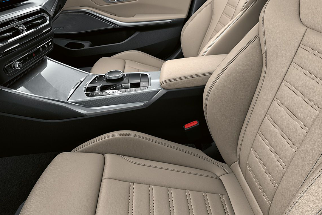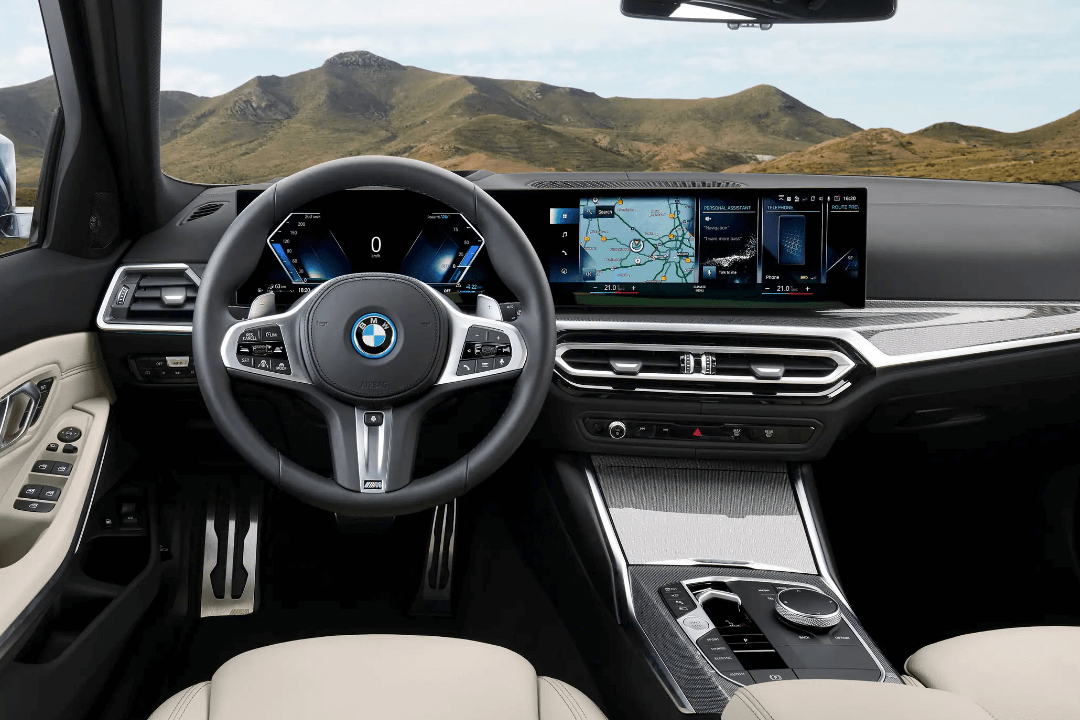 BMW 330e Touring M sportpaket är utrustad med bland annat 18″ M lättmetallfälg, sportstolar, widescreen display, park distance control och LED-dimljus.