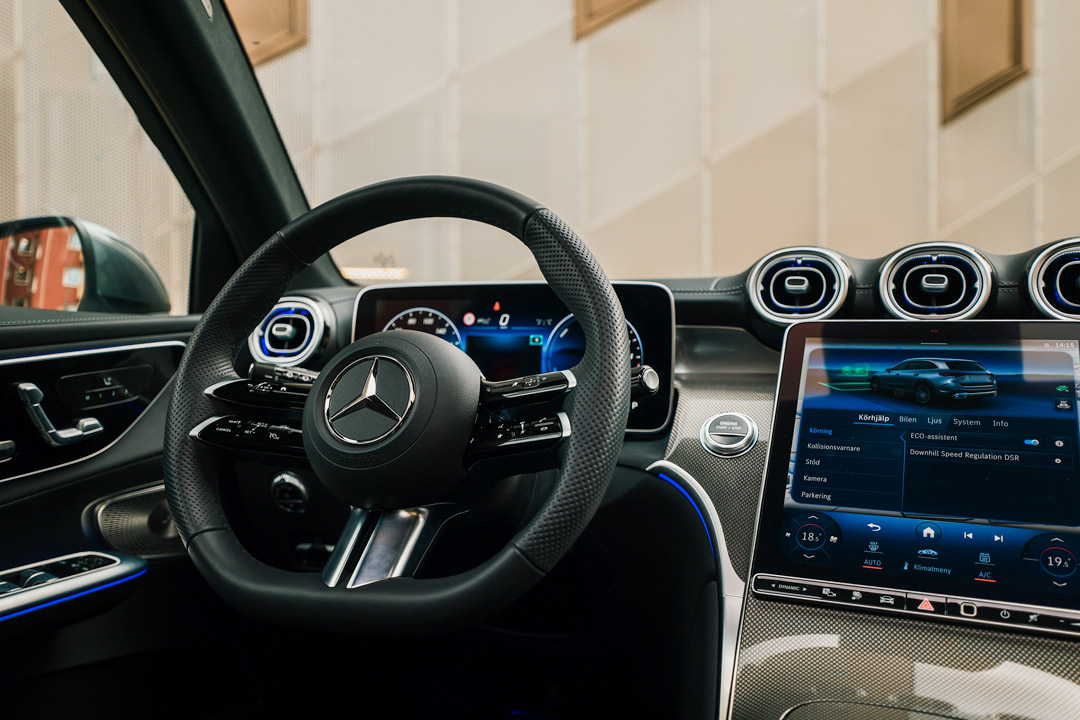 Tekniskt får du det senaste så som 9-växlad automatlåda för övergångsfri körning, en förardisplay på 12,3″, medieskärm på 11,9″ och Mercedes ME-funktioner för smartare bil.